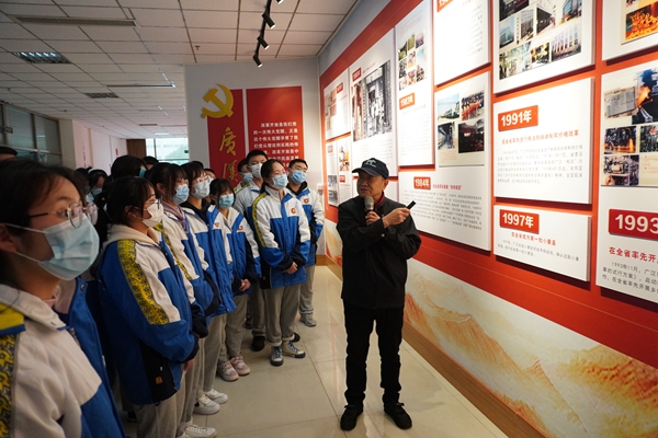随后,学生代表们进入党史馆聆听现场教学,在宣讲员带领讲解下,学习了解百年来的广汉党史。其中,特邀宣讲员、广汉市委原书记、市关工委名誉主任叶文志结合自身工作经历,通过回顾重大历史事件、历数广汉改革成绩的方式,为学生们深情讲述了广汉改革开放以来的改革史。在场学生们深受鼓舞和感动,纷纷表示老党员、老干部们的奋斗历史和取得的成绩是我们成长前进的动力,一定要发扬和继承好先辈的红色基因、光荣传统,认真学习好科学文化知识,报效祖国、服务人民。