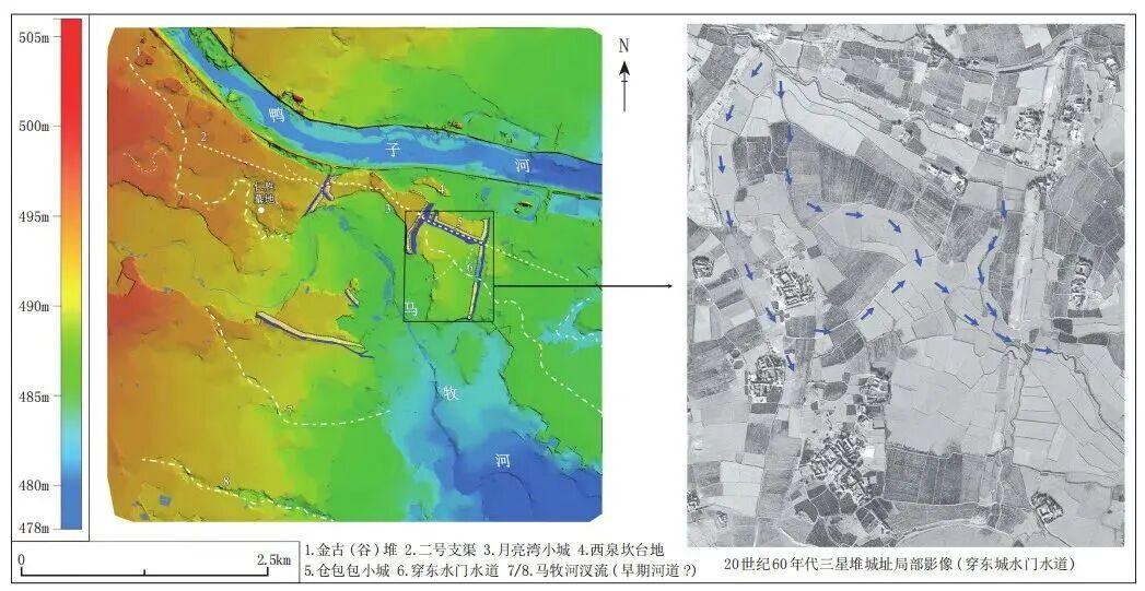 (DEM底图测绘数据来自三星堆考古工作站。城址早期影像为U-2飞机航拍影像,已经笔者配准)