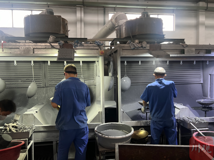 从江南屠宰场向南走700米,广汉市骏马金属制品厂最新引进的全自动激光切割机正在赶制一批定制锅具。