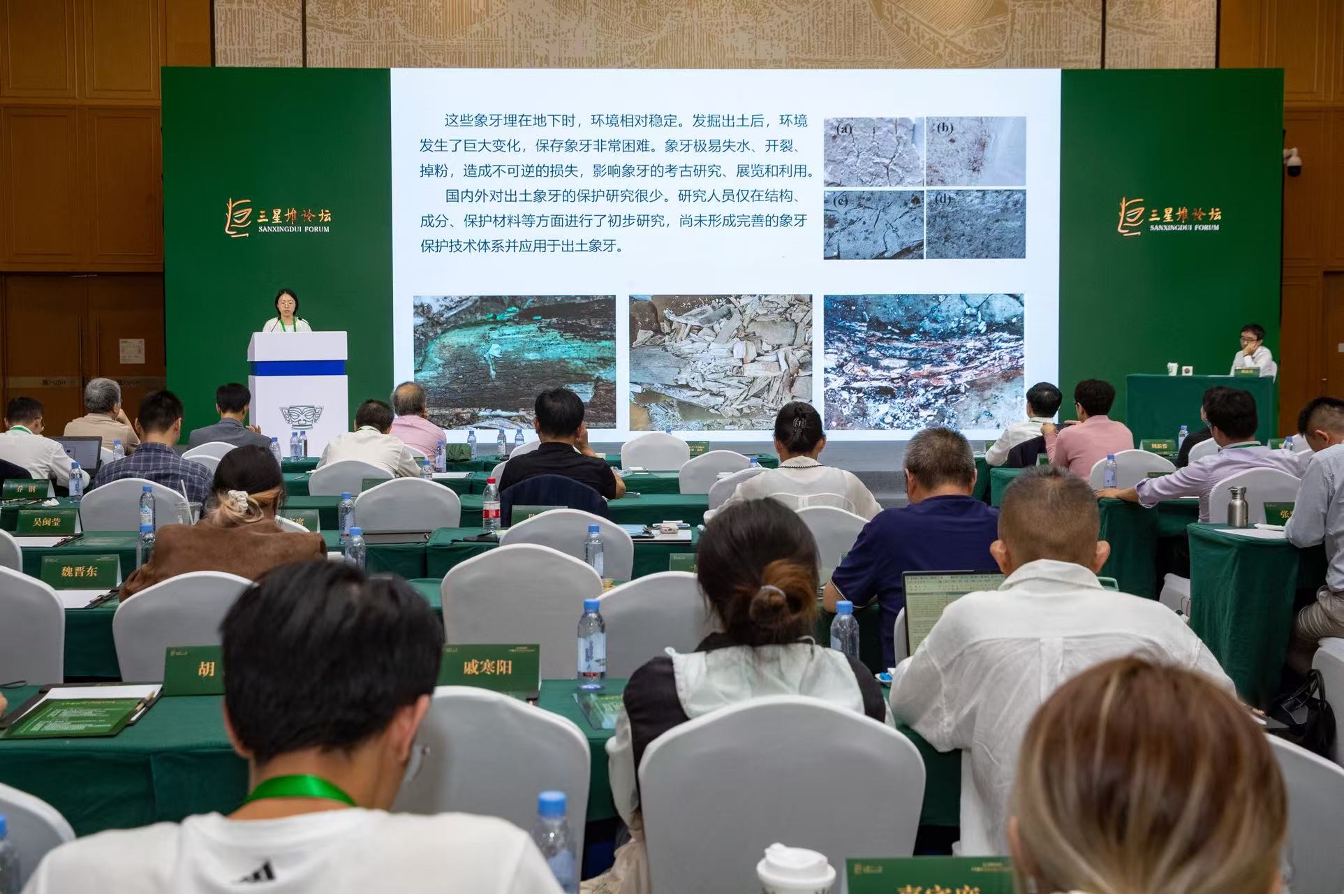 象牙保护作为世界性难题,同样凝聚了多地团队的智慧。2022年,成都市文物考古研究院牵头,联合北京、上海、陕西等9家单位共同承担国家重点研发计划《出土饱水象牙脱水加固关键技术研发与应用示范》项目。三星堆和金沙遗址出土的饱水象牙数以吨计,部分因叠压铜器变色或被烧灼,出土后环境剧变易失水开裂粉化。科研团队通过研发保湿材料、微生物监测技术、临时固形材料等现场保护技术,以及烷基胺脱水、纳米羟基磷灰石加固、微生物原位加固等关键技术,使饱水象牙重量保持率接近100%,孔隙率降低约50%,抗压强度提升3.3倍。 目前,经脱水加固处理的三星堆、金沙象牙已保持原有形貌结构,可直接在博物馆展示,部分样品已在成都考古中心展出。这一成果不仅解决了象牙保存的世界难题,更体现了跨地域团队协作在文物保护中的核心价值。 分享全球经验 共同为遗址保护与活化利用建言献策 目前,三星堆正加速推进国家文物保护利用示范区建设,规划投资超70亿元打造三星堆文化旅游发展区,集成博物馆、遗址公园、VR考古体验馆等沉浸式场景,构建“吃住行游购娱”全链条文旅生态。而国际交流的深化不仅能推动技术进步,更能促进文化的公众传播,让遗址建设更加深入人心。