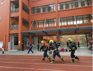“呜……”尖锐刺耳的警报声骤然响起,同时广播里发出指令:“现在地震来袭,实施紧急避险!”教室里的孩子们立即护住头部,蹲身在课桌下“避险”。紧接着,根据广播提示,孩子们在老师的引导下迅速沿着既定路线“逃生”。仅仅用时2分钟,4层楼、43个班级、2000多名师生,全部安全疏散到开阔的操场上,整个过程秩序井然。随后,因地震引发“火灾”,二楼有人员“被困”,消防队员火速出击,医务人员通力配合,“被困”人员安全“获救”。