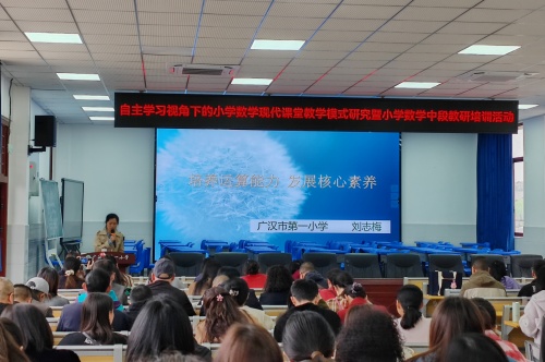 近日,广汉市自主学习视角下的小学数学现代课堂教学模式研究暨小学数学中段数学课堂教学研讨活动在广汉市第一小学举行,涵盖课例展示、评课议课、专题讲座等环节。全市四年级数学教师参加,数学教研员金静亲临指导。