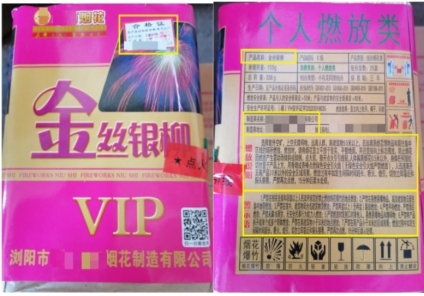选购包装上包含制造商名称及地址、含药量、警示语、燃放说明、生产日期、保质期、执行标准编号(如GB 10631-2013或GB 10631-2025《烟花爆竹 安全与质量》,2025版标准于2026年5月1日实施)等基本信息的产品。