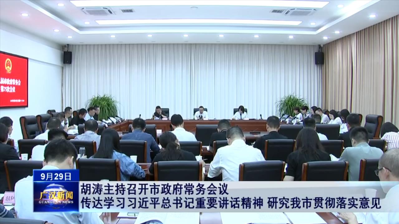 胡涛主持召开市政府常务会议 传达学习习近平总书记重要讲话精神 研究我市贯彻落实意见